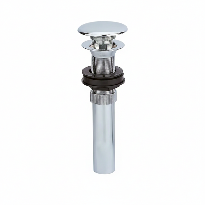 La Válvula Pop-Up Castel 90.0155SR de cierre extendido sin rebosadero está diseñada especialmente para lavabos de sobreponer o de mayor grosor. Su sistema de apertura y cierre tipo push (clic-clac) brinda practicidad: con solo presionar, el agua fluye o se retiene de forma segura.
