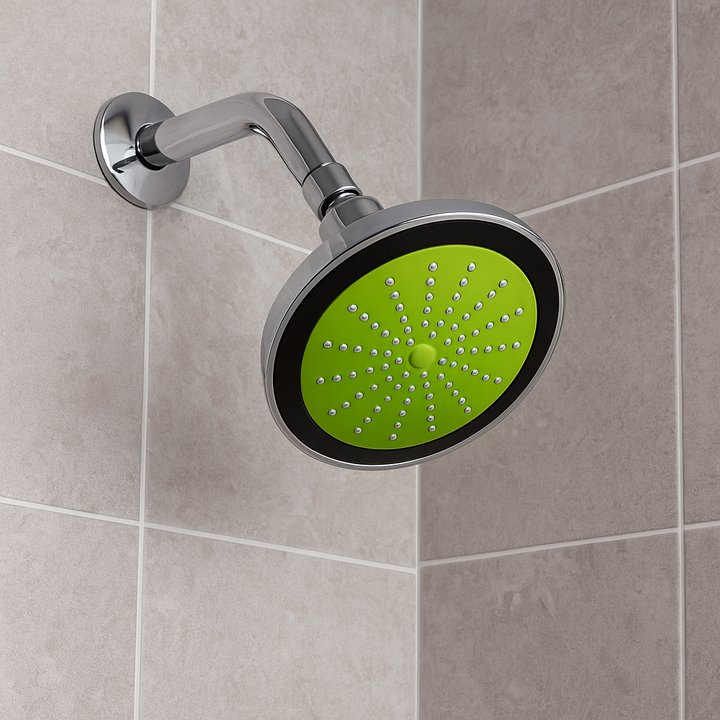 Regadera Bipex 09H-15514 de 9” en ABS verde con bola de bronce. Diseño resistente, moderno y funcional para baños residenciales o comerciales.