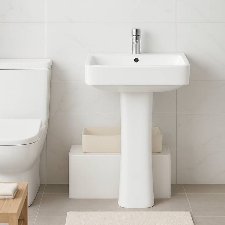 Fabricados en cerámica de alta calidad, tanto el lavabo como el pedestal garantizan resistencia, durabilidad y fácil limpieza. El pedestal de una sola pieza ofrece soporte firme y uniforme al lavabo, logrando un conjunto estético y robusto.