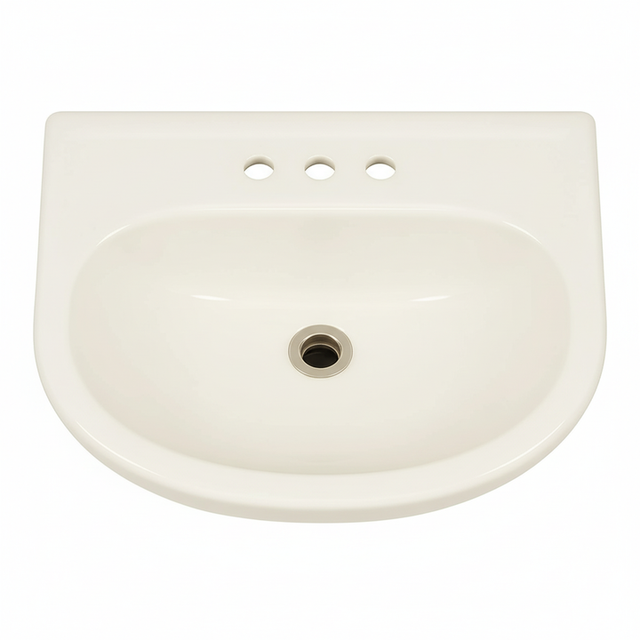 Lavabo Ceramosa Comfort marfil, fabricado en cerámica de calidad única. Diseño elegante de una sola pieza con perforación de 4", ideal para baños residenciales y comerciales.