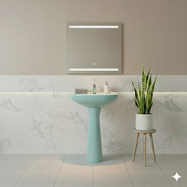 Compatible con pedestal o muebles de baño.