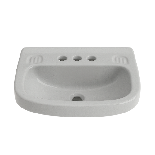 Lavabo Premier gris comercial Kisson. Fabricado en cerámica sanitaria vitrificada, resistente y duradera, ideal para baños públicos y de alto tránsito.