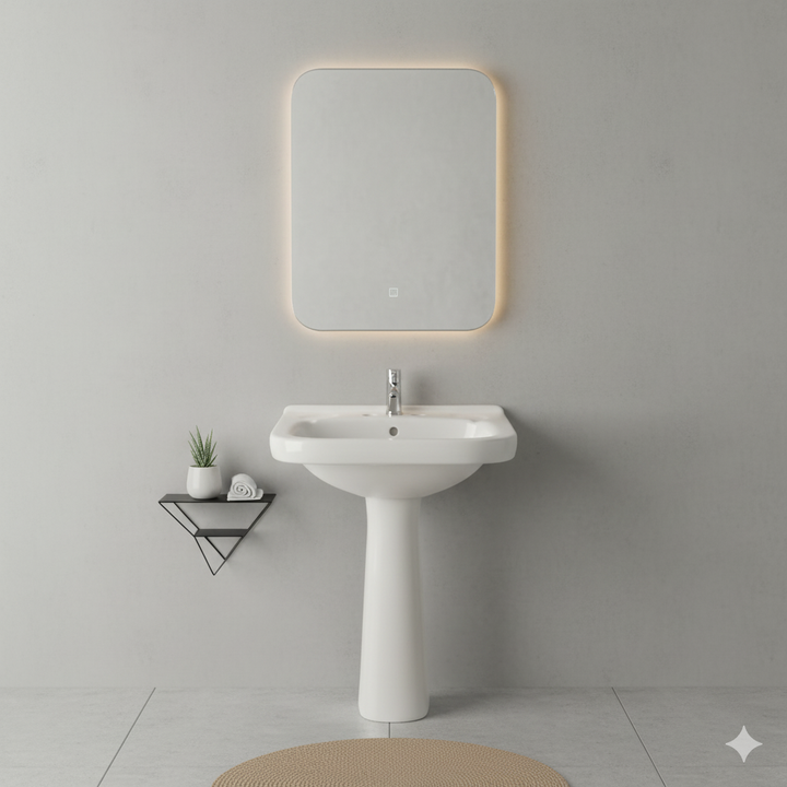Set completo: lavabo y pedestal en un mismo diseño uniforme.