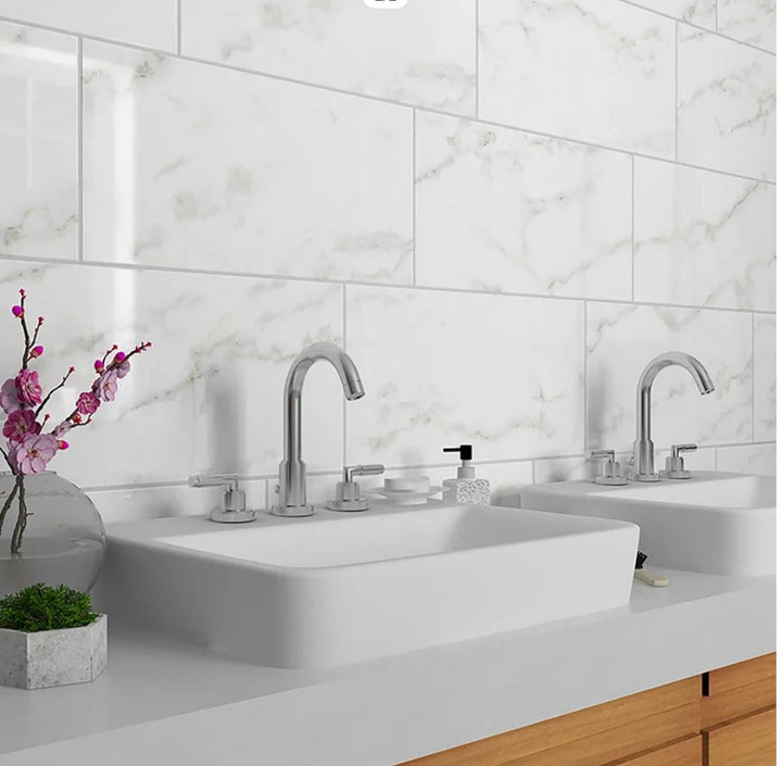 Recubrimiento cerámico para muro en estilo mármol Carrara de 30×60 cm, marca Tecnopiso. Caja con 1.62 m², acabado elegante y fácil de limpiar. El Muro Tecnopiso Carrara (30×60 cm) combina la belleza atemporal del mármol con la practicidad de la cerámica. Su diseño imita fielmente las vetas naturales del Carrara, aportando luminosidad y sofisticación a cualquier espacio. Ideal para baños, cocinas, salas y muros decorativos, su acabado es resistente, fácil de limpiar y mantiene su aspecto elegante con el tiempo. Cada caja cubre 1.62 m², lo que facilita la planificación del proyecto.