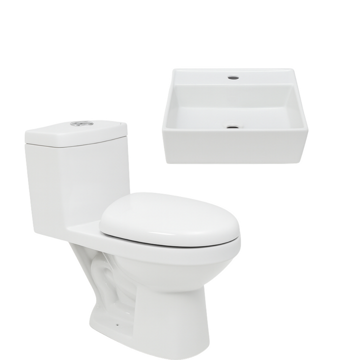 Paquete completo con taza, tanque, lavabo y pedestal.