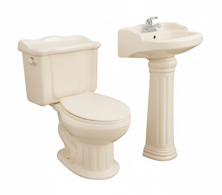 Paquete completo con taza, tanque, lavabo y pedestal.