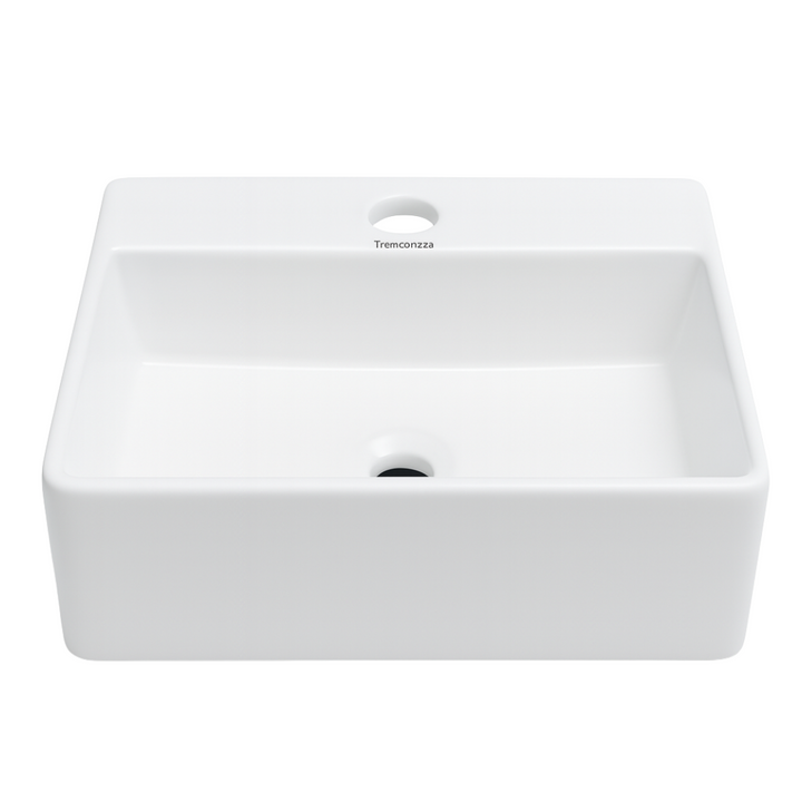 Lavabo Tendenzza PL010 Enza rectangular blanco, fabricado en cerámica de alta calidad. Diseño minimalista y elegante, ideal para baños residenciales y comerciales.