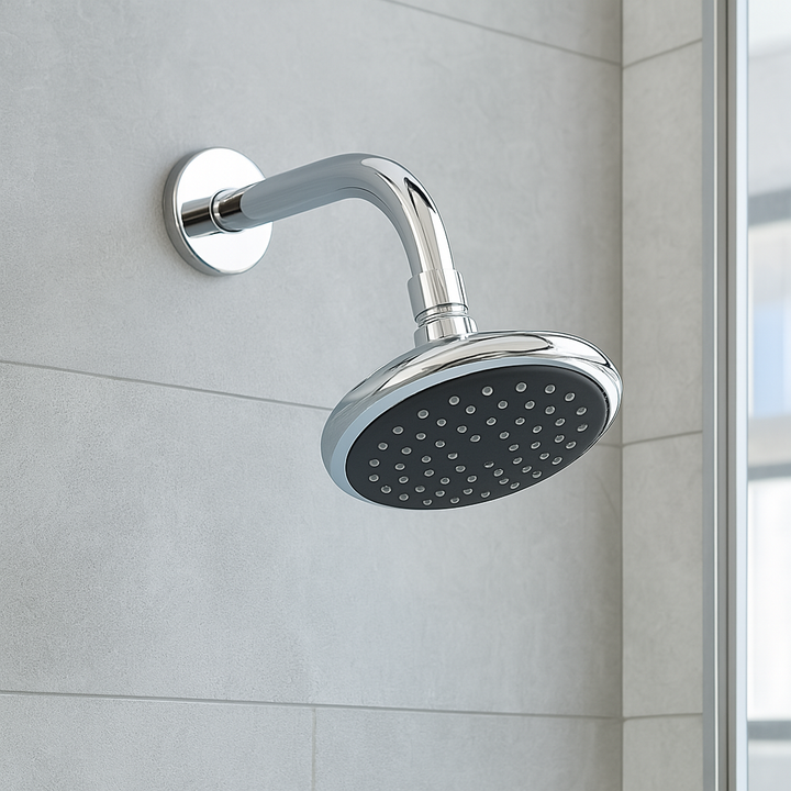 Regadera Proyecta REC-01 con brazo y chapetón. Diseño práctico, elegante y resistente para baños residenciales y comerciales.