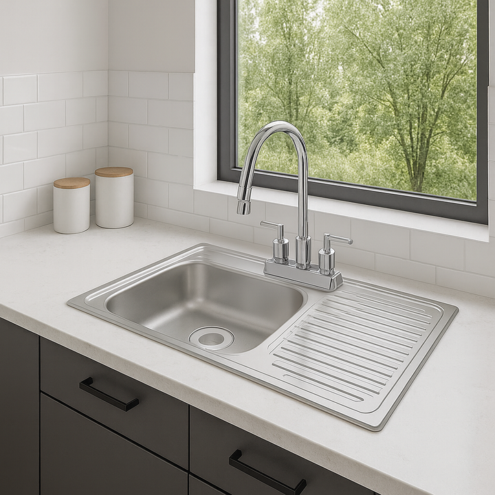 Tarja Anabella 100×50 cm con escurridor derecho. Práctica, resistente y funcional, ideal para cocinas modernas y espacios eficientes.