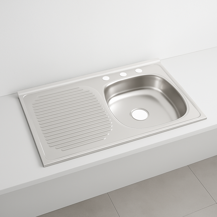 La Tarja Anabella 100×50 cm con escurridor izquierdo combina diseño funcional y resistencia, ofreciendo un área de trabajo cómoda y eficiente. Su formato amplio permite lavar ollas y utensilios grandes, mientras que el escurridor lateral izquierdo facilita el secado y mantiene la cocina siempre ordenada.