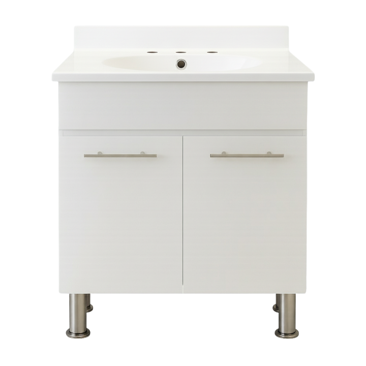 Tocador Katia blanco alto brillo con ovalín de cerámica. Medidas 63×47 cm, diseño moderno y funcional para baños residenciales.